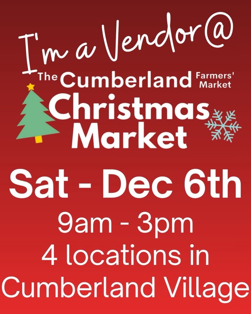 - We are at the Cumberland Farmers Market today 9-1 come see our new products.